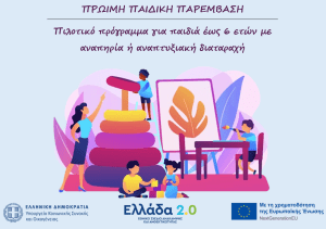 Δήλωσε τώρα συμμετοχή στον πιστοποιημένο φορέα ΔΙΕΘΝΕΣ ΚΕΝΤΡΟ ΓΙΑ ΤΗ ΒΙΩΣΙΜΗ ΑΝΑΠΤΥΞΗ (ICSD), μέλος του Ηλεκτρονικού Μητρώου Παρόχων Υπηρεσιών Οικογενειοκεντρικής Πρώιμης Παιδικής Παρέμβασης και πάροχο υπηρεσιών αξιολόγησης, λογοθεραπείας, εργοθεραπείας, ψυχολογικής και κοινωνικής υποστήριξης σε παιδία 0 – 6 ετών με αναπηρία ή αναπτυξιακές δυσκολίες, Οι υπηρεσίες προσφέρονται στο πλαίσιο του προγράμματος «Πρώιμη Παιδική Παρέμβαση» το οποίο […]