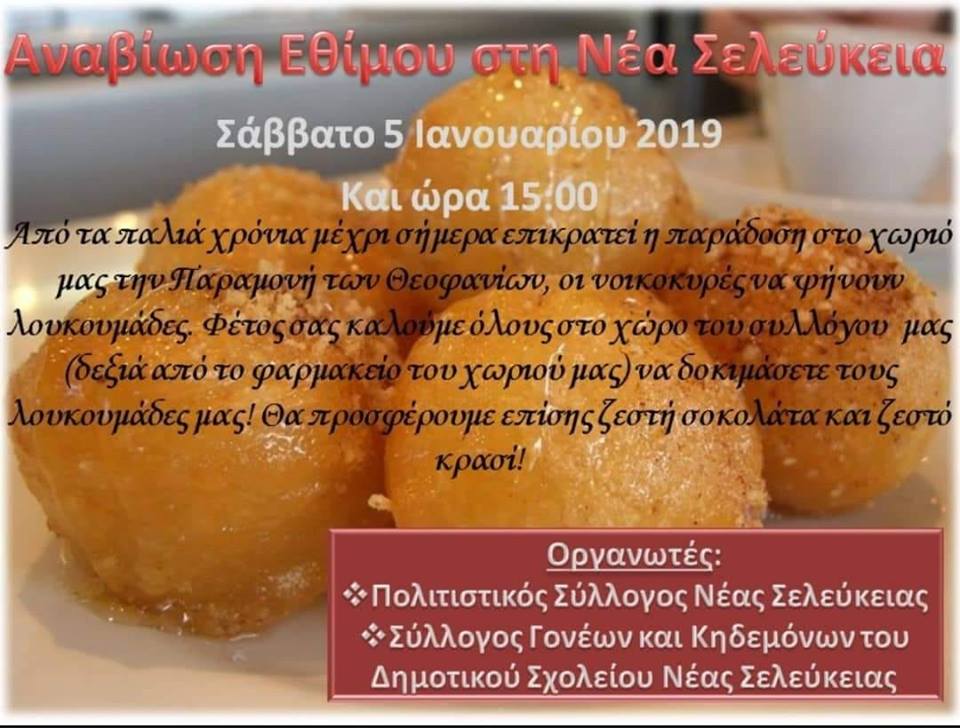 Αναβίωση εθίμου με ψήσιμο λουκουμάδων στη Νέα Σελεύκεια το Σάββατο