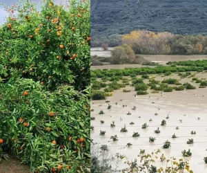 «Σε μία περιοχή 45.000 στρεμμάτων που η κύρια καλλιέργεια είναι τα εσπεριδοειδή και επί το πλείστον η κλημεντίνη που είναι τώρα η εποχή της συγκομιδής της, ο όγκος των βροχοπτώσεων ήταν τόσο μεγάλος και απότομος που τα υπάρχοντα στραγγιστικά δίκτυα δεν είχαν τη δυνατότητα να μπορέσουν να αποστραγγίσουν την πεδιάδα. Αυτό προκάλεσε πλημμύρες μέσα στα κτήματα. Δέντρα και καρποί βρέθηκαν μέσα στο νερό. Απ΄ αυτούς τους καρπούς ήδη το 30% είναι ακατάλληλο για συγκομιδή και ό, τι υπόλοιπο έχει μείνει τις επόμενες μέρες λόγω της έντονης υγρασίας θα πάθει την ασθένεια μονίλια», μας ανέφερε ο πρόεδρος ΤΟΕΒ, Ραγίου Κεστρίνης, Νίκος Στεργίου.