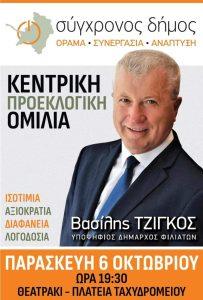 Την Παρασκευή η κεντρική προεκλογική ομιλία του Βασίλη Τζίγκου